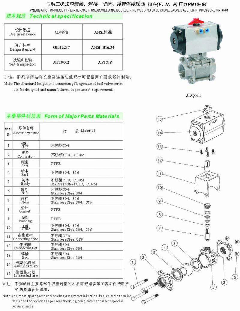 JLQ6氣動三塊式內(nèi)螺紋/焊接/卡箍/接管焊接球閥是我公司的優(yōu)質(zhì)產(chǎn)品之一,在上海JLQ6氣動三塊式內(nèi)螺紋/焊接/卡箍/接管焊接球閥廠家中享有極高的品質(zhì)聲譽(yù)與服務(wù)評價.