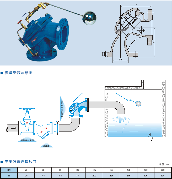 100A角型定水位閥是一種隔膜式調(diào)節(jié)水箱和水塔液面高度的閥門。閥門由一特殊強化尼龍膜片將其分為上下兩個空室,當(dāng)液面達到設(shè)定位置時,浮球?qū)чy關(guān)閉,上腔壓力大于下腔,閥門關(guān)閉,即停止供水;當(dāng)液面下降超過預(yù)設(shè)位置,浮球?qū)чy開啟,上腔壓力小于下腔壓力,閥門開啟,閥門向池內(nèi)供水。角型定水位閥安裝方便,可省去管道彎頭,節(jié)省安裝空間。該閥保養(yǎng)簡單、靈活耐用、液位控制準確度高,水位不受水壓干擾且關(guān)閉緊密不漏水,性能可靠,成本底。浮球可隨水池的高度和距度安裝。