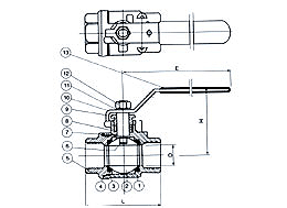 注:二片式球閥連接形式另有對焊(BW)承插焊(SW),并均可帶國際標準ISO支架和鎖定裝置