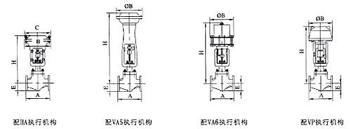 備注:該閥也可配用VA5或VA6和VP執(zhí)行機(jī)構(gòu)